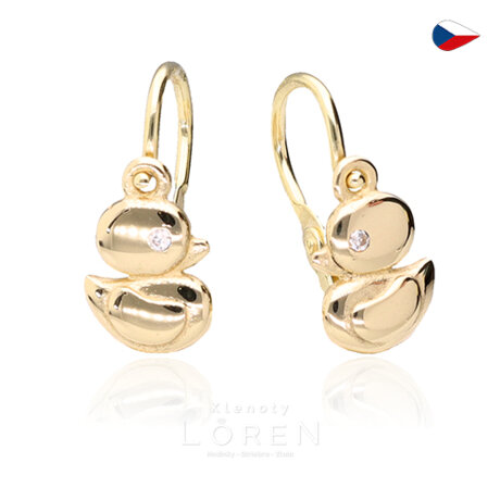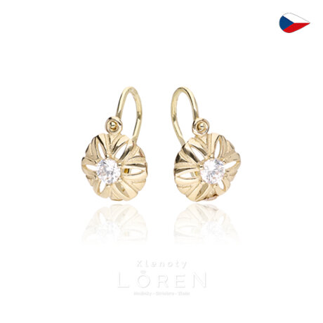 Náušnice zlaté detské - kvietok s bielym zirkónom