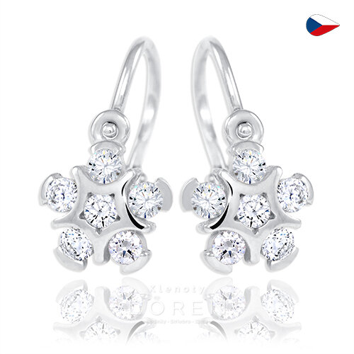 Detské zlaté náušničky z bieleho zlata. Náušničky zdobia jemné žarivé zirkóny. Tieto náušničky budú vašu malú princeznú zdobiť od narodenia až po prvé rôčiky školských čias.