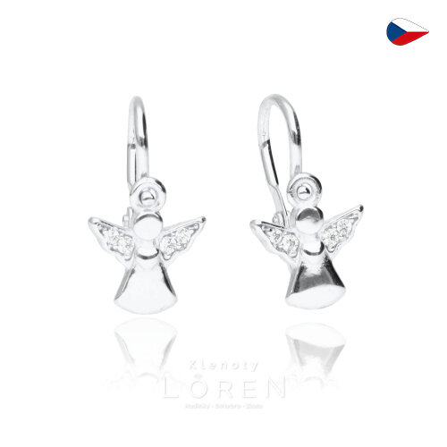 Detské zlaté náušničky z bieleho zlata v tvare anjelika s čírymi zirkónmi na krídlach. Náušničky zdobia jemné, žarivé zirkóny.