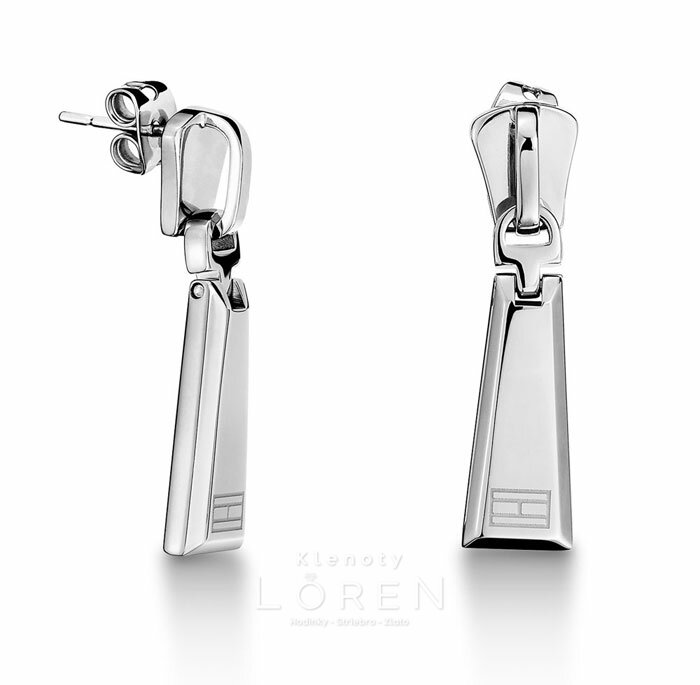 Dámske, oceľové náušnice Tommy Hilfiger, imitácia zipsov v striebornej farbe.