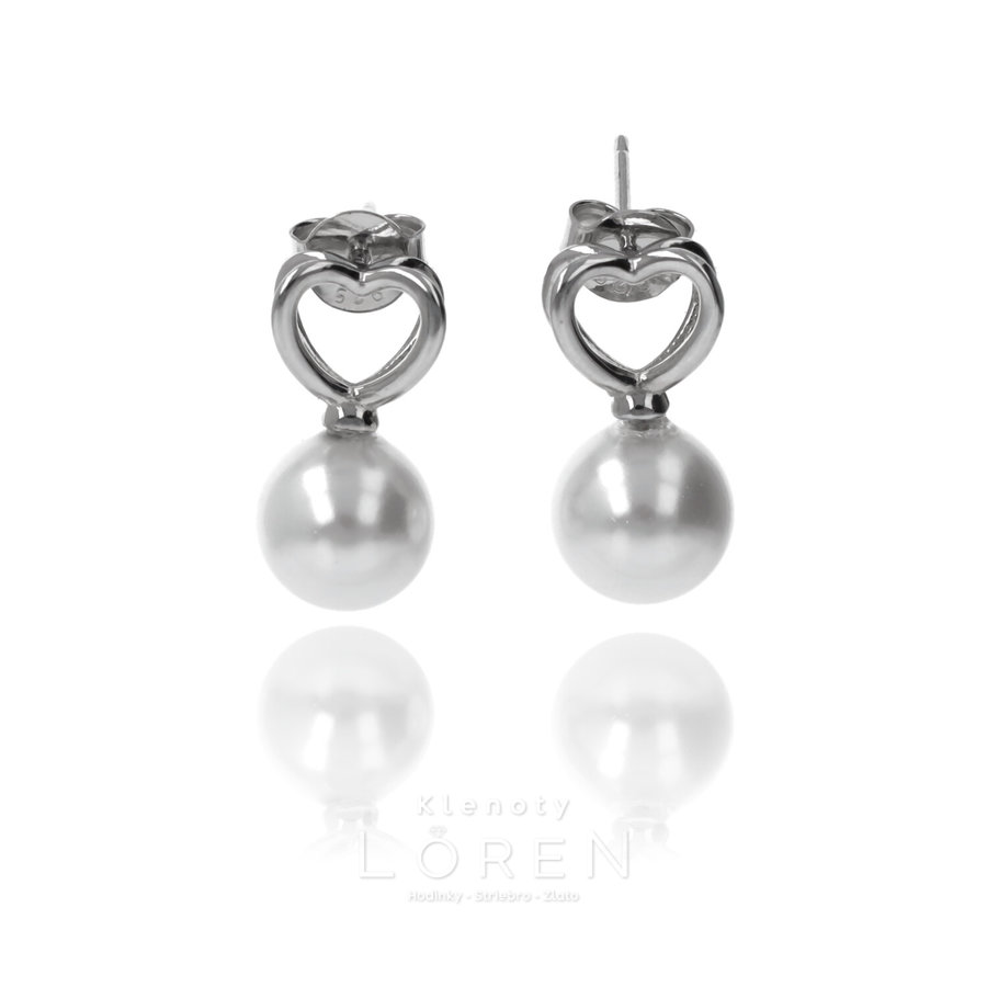 Jemné, strieborné, dámske náušnice s perličkou. Náušničku tvorí jemné srdiečko na spodnej časti zdobené perličkou.