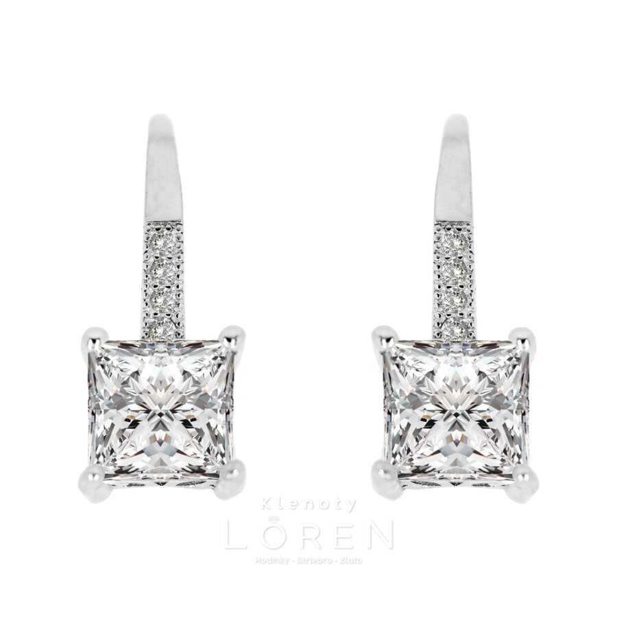 Nádherné moderné strieborné náušnice osadené žiarivými čírymi zirkónmi.