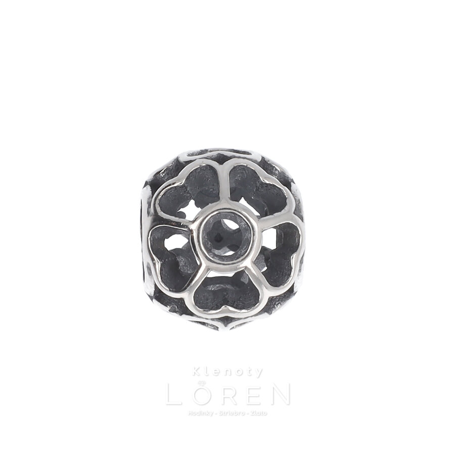 Strieborný prívesok na náramok v tvare kvietka (lupienky v tvare srdca).