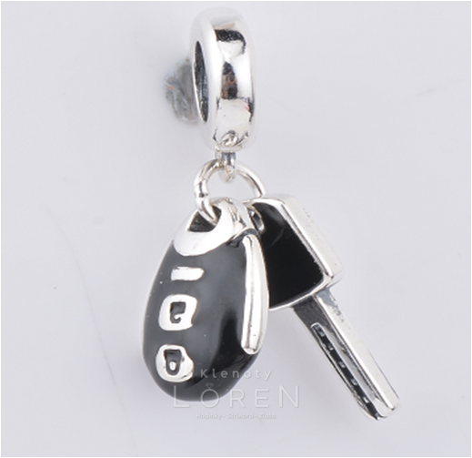 Strieborný prívesok pandoraa na náramok - dve visiace časti (kľúč s alarmom).