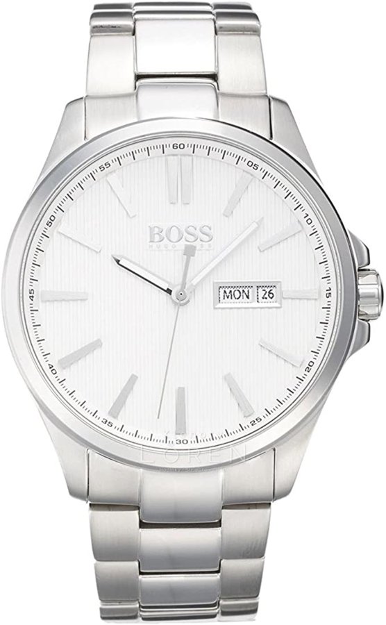 Pánske, hodinky Hugo Boss na kovovom remienku s ciferníkom v bielej farbe doplneným o dátumovník.