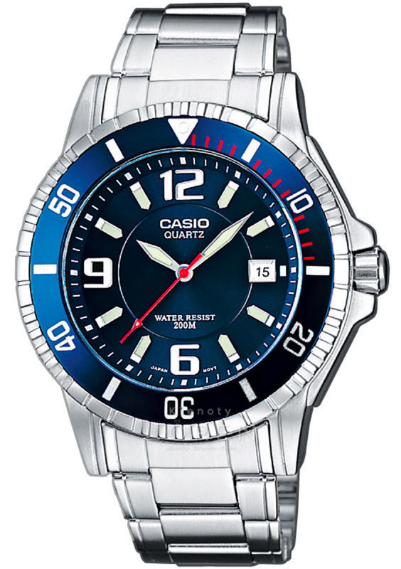 Pánske hodinky Casio MTP-1053D-2A-kovové s modrým ciferníkom.