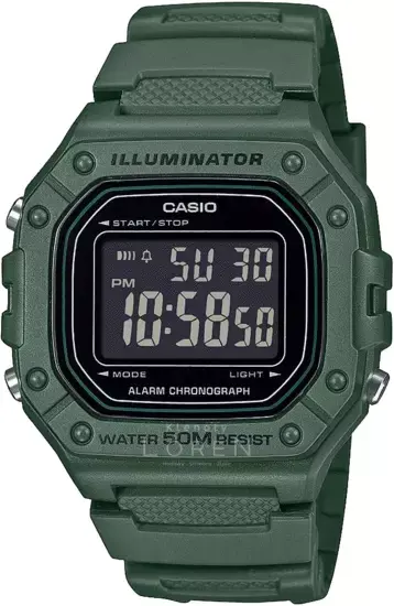Pánske, hranaté hodinky CASIO, určené pre pánov, ktorý uprednostňujú digitálne zobrazenie času. V hornej kolónke je zreteľne zobrazený čas a dátum.