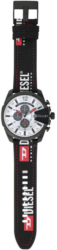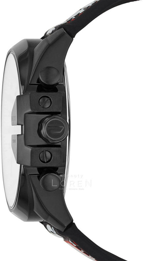 Hodinky z dielne obľúbenej fashion značky Diesel si na prvý pohľad zamilujú všetci muži so záľubou v neprehliadnuteľných doplnkoch. Ich čierne puzdro z ušľachtilej ocele pôsobí skutočne masívne; tento dojem umocňuje aj kryt korunky zasahujúcej do ciferníka. Strieborný ciferník zaujme tromi chronografmi, ktoré disponujú funkciou stopiek. Samozrejmosťou je tiež užitočná dátumovka . Na zápästí sa hodinky pripínajú príjemným silikónovým remienkom. Určite oceníte aj vodeodolnosť až do 100 metrov, ktorá umožňuje plávanie s hodinkami na zápästí. Ozdobte sa doplnkom pre pravých chlapov a užívajte si pozornosť širokého okolia. Obvod hodiniek je 16,5 - 21 cm.