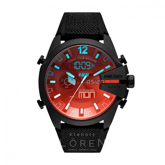 Pánske, masívne, hodinky značky Diesel na silikónovom remienku v s čiernym ciferníkom.
