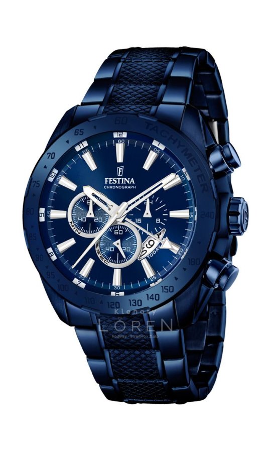 Pánske hodinky Festina v klasickom modrom prevedení očaria svojou jednoduchosťou.Hodinky sú doplnené o funkciu dátumu,stopiek a duálneho času.