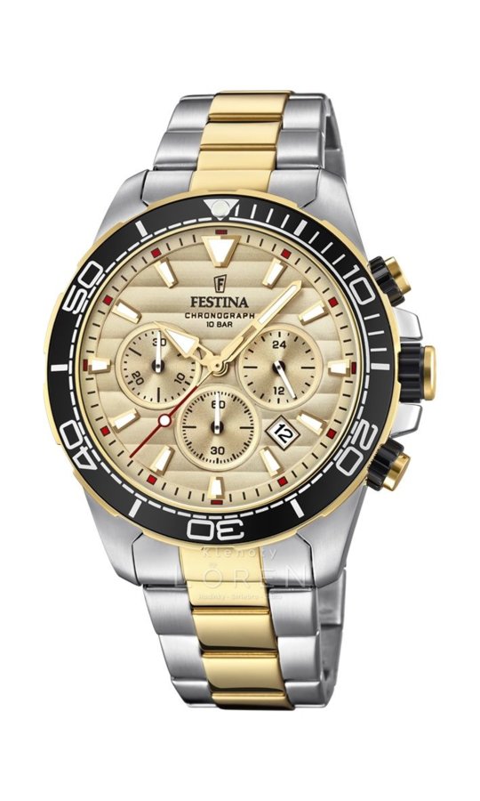 Exkluzívne bicolor pánske hodinky Festina s béžovým analógovým ciferníkom s chronografmi .Hodinky sú doplnené o funkcie dátumu,stopiek.