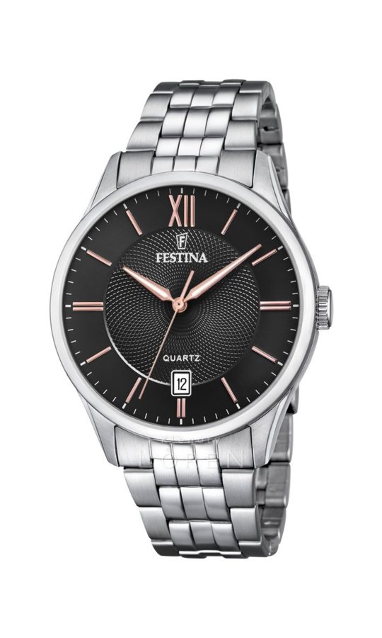 Klasické pánske hodinky Festina Vás očaria svojou jednoduchosťou ,kombinujú čiernu a striebornú farbu ,ktorou určite nič nepokazíte.Hodinky sú doplnené o funkciu dátumu.