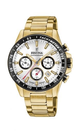 Designové pánske zlaté hodinky Festina s bielym ciferníkom očaria svojou originalitou.Hodinky sú doplnené o funkciu dátumu.