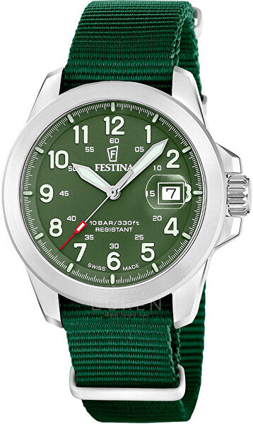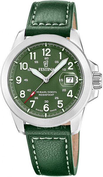 Elegantné, robustné a všestranné – také sú hodinky Festina Field, ideálne na každodenné nosenie. Zelený ciferník s výraznými luminiscenčnými indexmi a ručičkami zaisťuje perfektnú čitateľnosť za akýchkoľvek svetelných podmienok a harmonicky dopĺňa puzdro z ušľachtilej ocele.