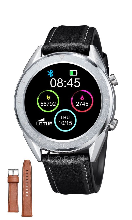 Pánske, smart hodinky Lotus majú veľký dotykový displej, ktorý umožňuje prehľadné zobrazenie všetkých funkcií, s prispôsobiteľným rozhraním hlavnej obrazovky. Pohodlie je zaistené vodotesnosťou a súčasťou balenia sú dva remienky. Veľmi ľahkým spôsobom si ich môžete sami meniť.