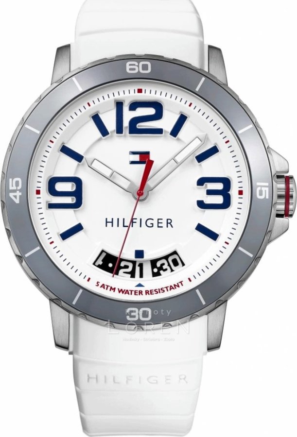 Pánske hodinky Tommy Hilfiger na bielom, silikónovom remienku.