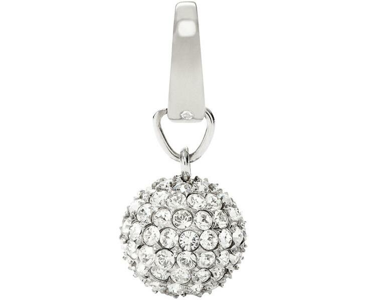 Dámsky, oceľový prívesok na náramok v striebornej farbe v tvare guličky.