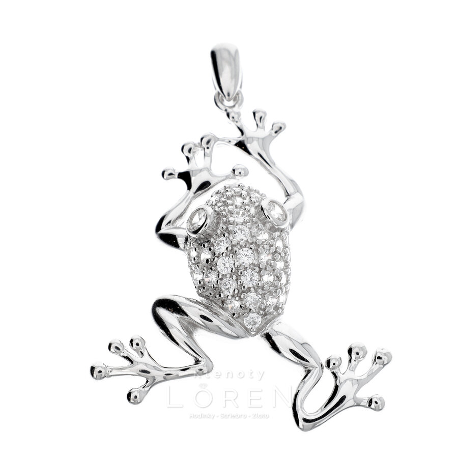 Prívesok strieborný skákajúca žabka so zirkónmi.