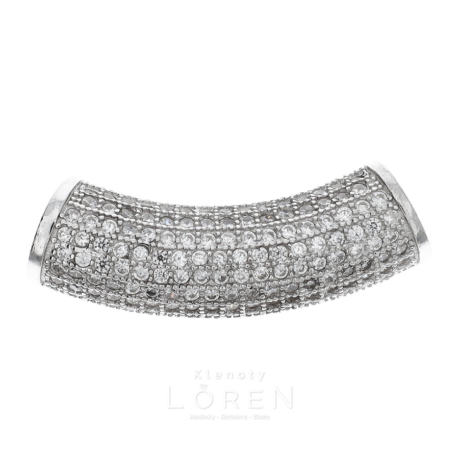 Prívesok strieborný ohnutý valček so zirkónmi po obvode.