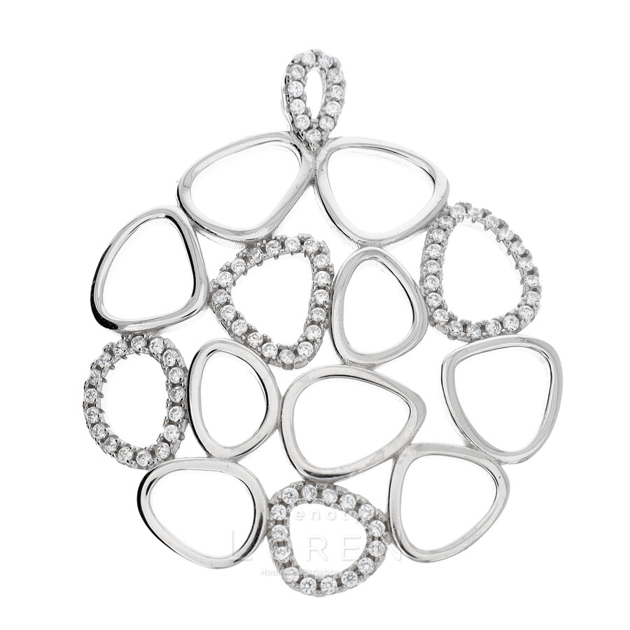Prívesok strieborný so zirkónmi v abstraktnej tématike so zirkónmi. Výrazný šperk.