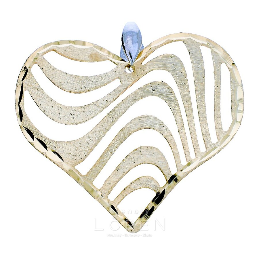 Prívesok strieborné srdce s pozlatenou povrchovou úpravou s lesklými a matnými časťami.