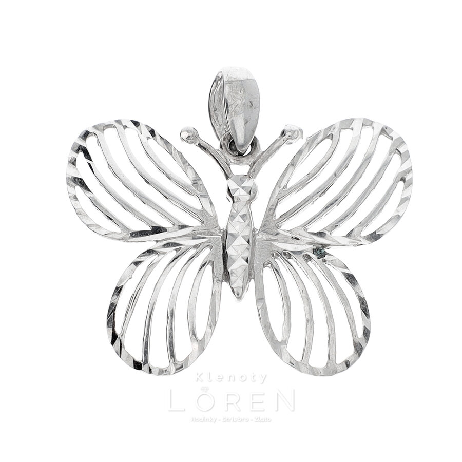 Prívesok strieborný motýľ hladký bez zirkónov. Prívesok má lesklú hladkú povrchovú úpravu - jemný gravír s poródiovaním.
