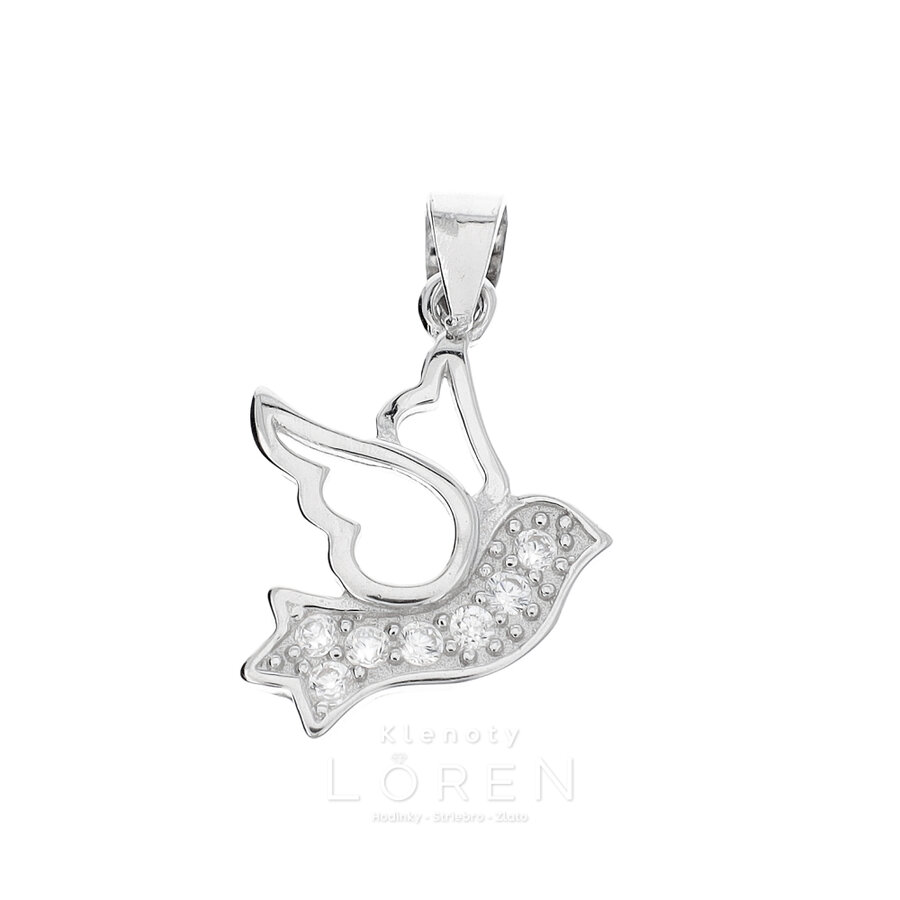 Prívesok strieborný vtáčik s čírymi zirkónmi s poródiovanou povrchovou úpravou.