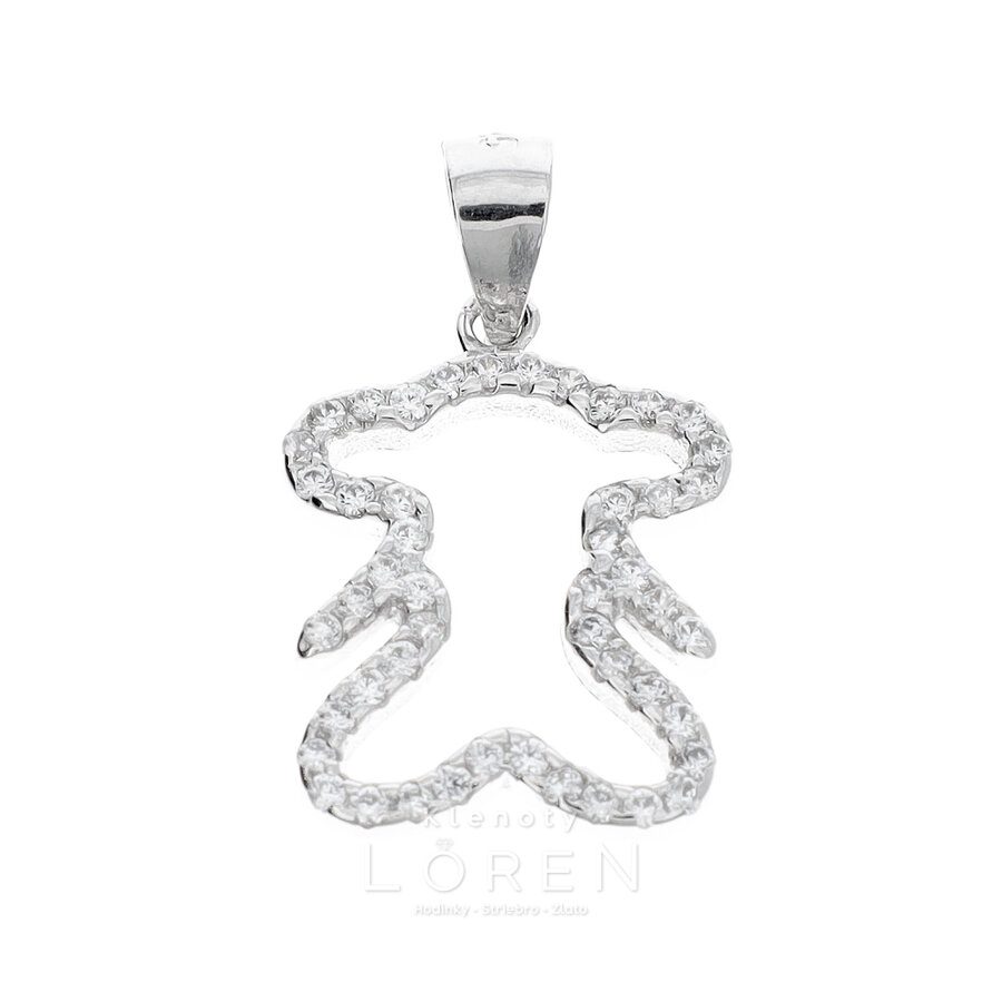 Prívesok strieborný medveď s čírymi zirkónmi po obvode s poródiovanou povrchovou úpravou.