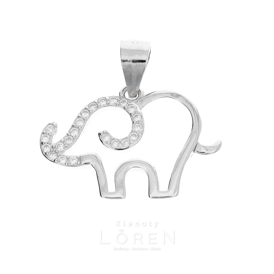 Prívesok strieborný sloník s čírymi zirkónmi s poródiovanou povrchovou úpravou.