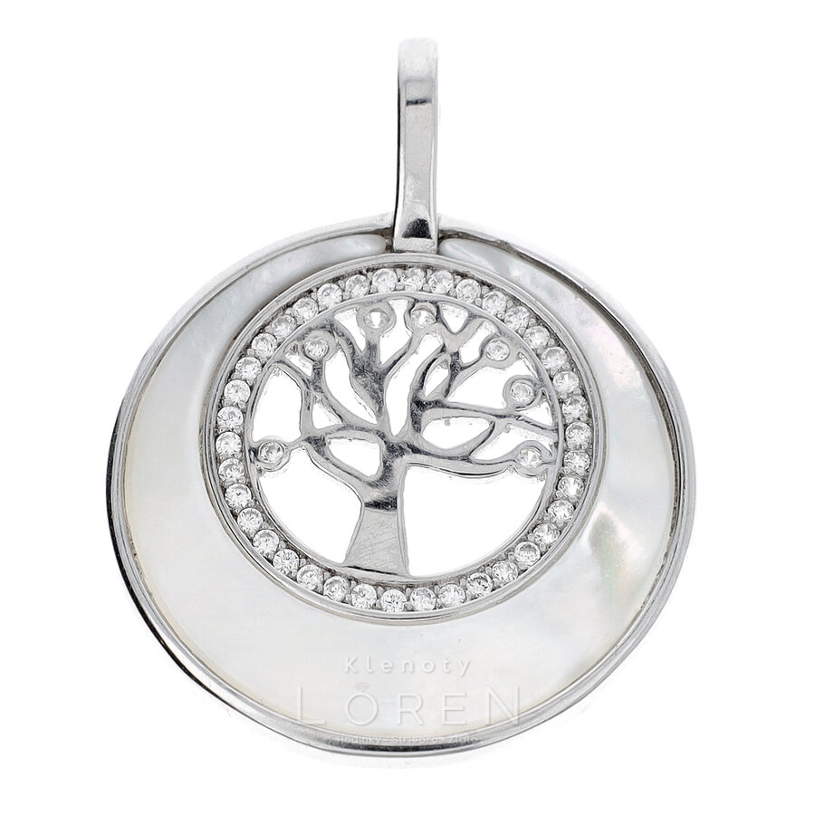 Prívesok strieborný stromček šťastia so zirkónmi a perleťou.