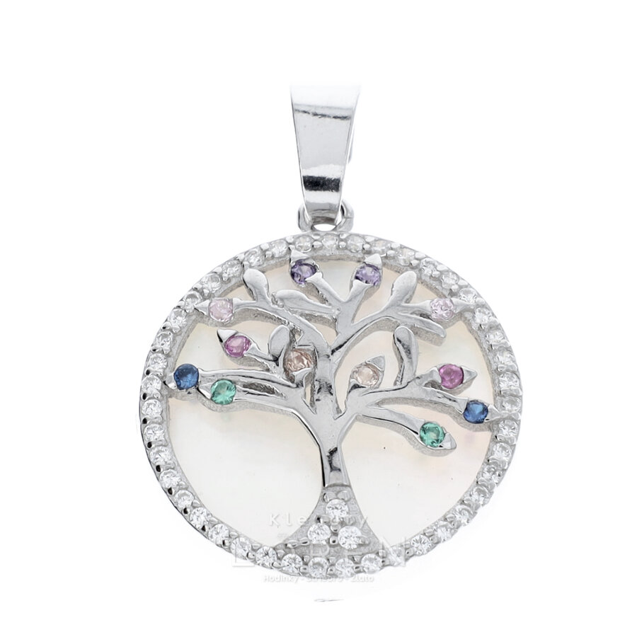 Prívesok strieborný stromček šťastia s farebnými zirkónmi.