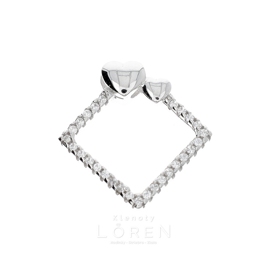 Prívesok strieborné srdce s čírymi zirkónmi v tvare štvorca.