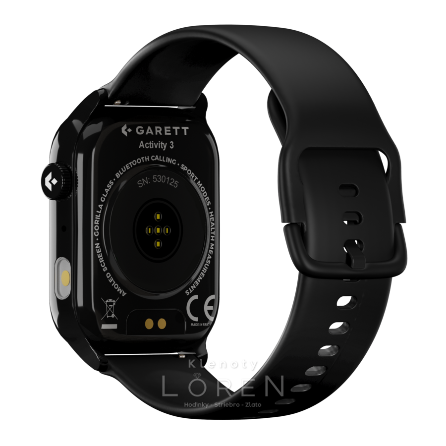 | Sada obsahuje | GARETT smartwatch, prídavný silikónový remienok, nabíjací kábel, QSG manuál |