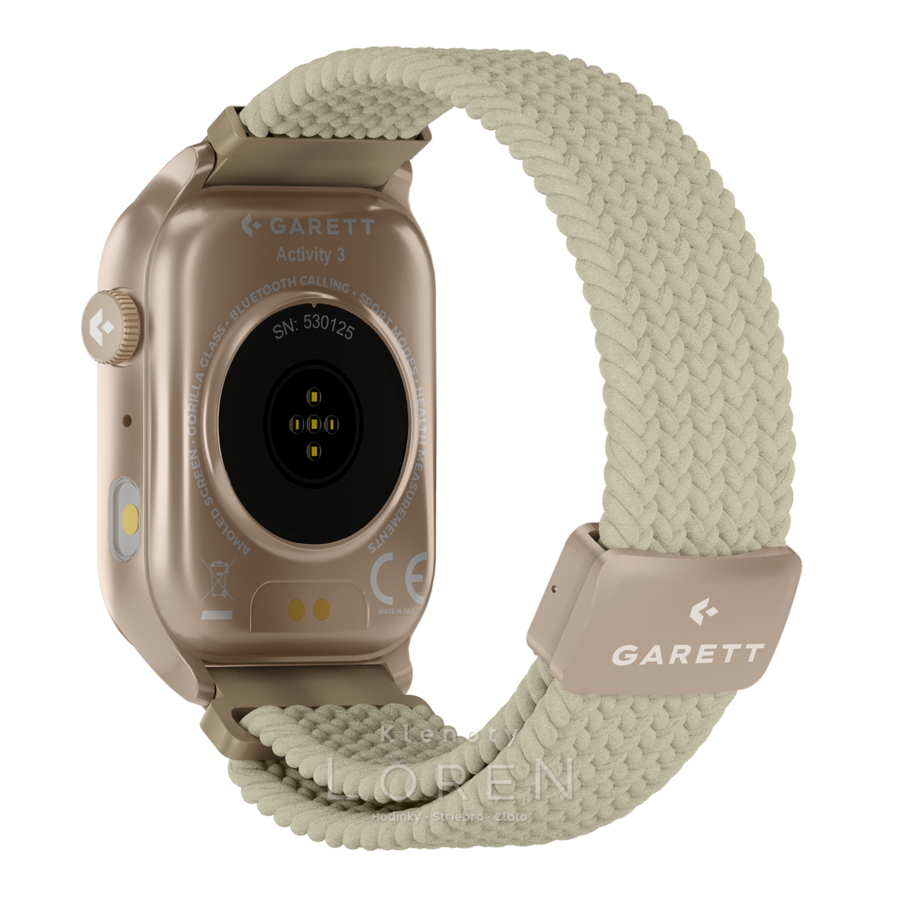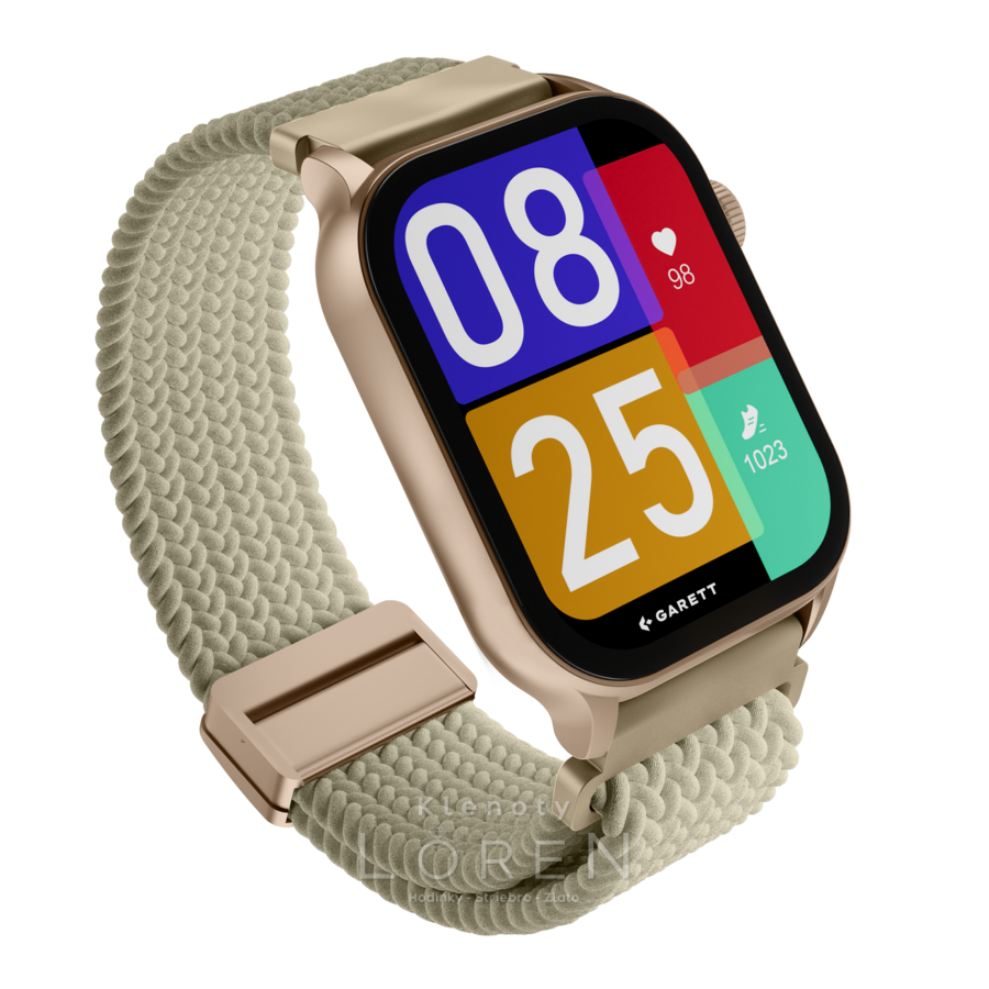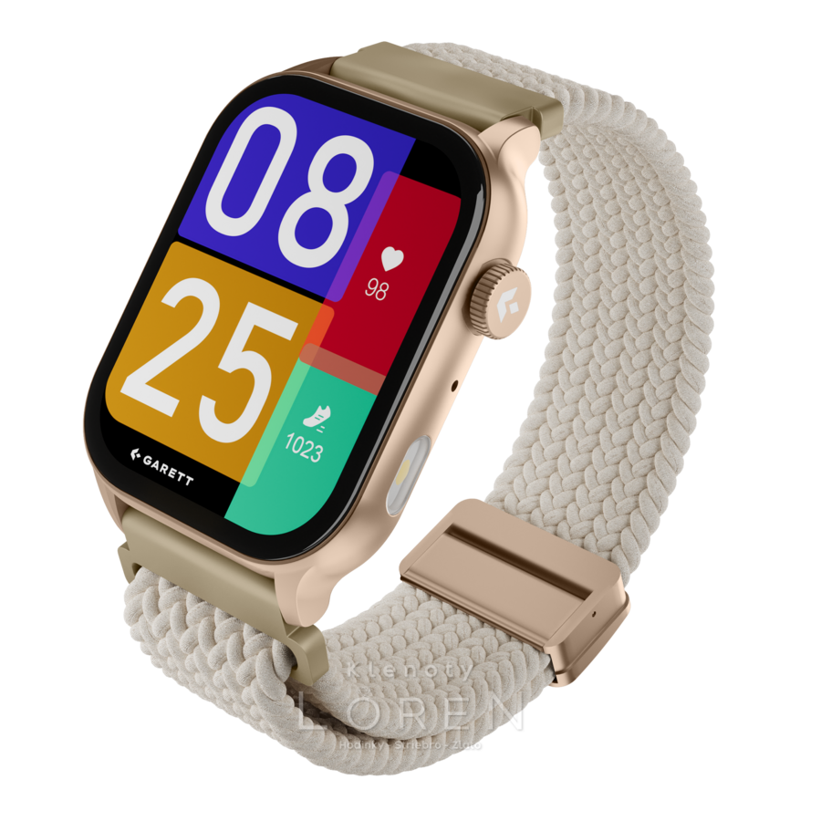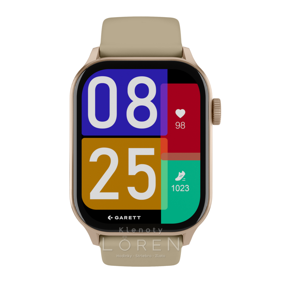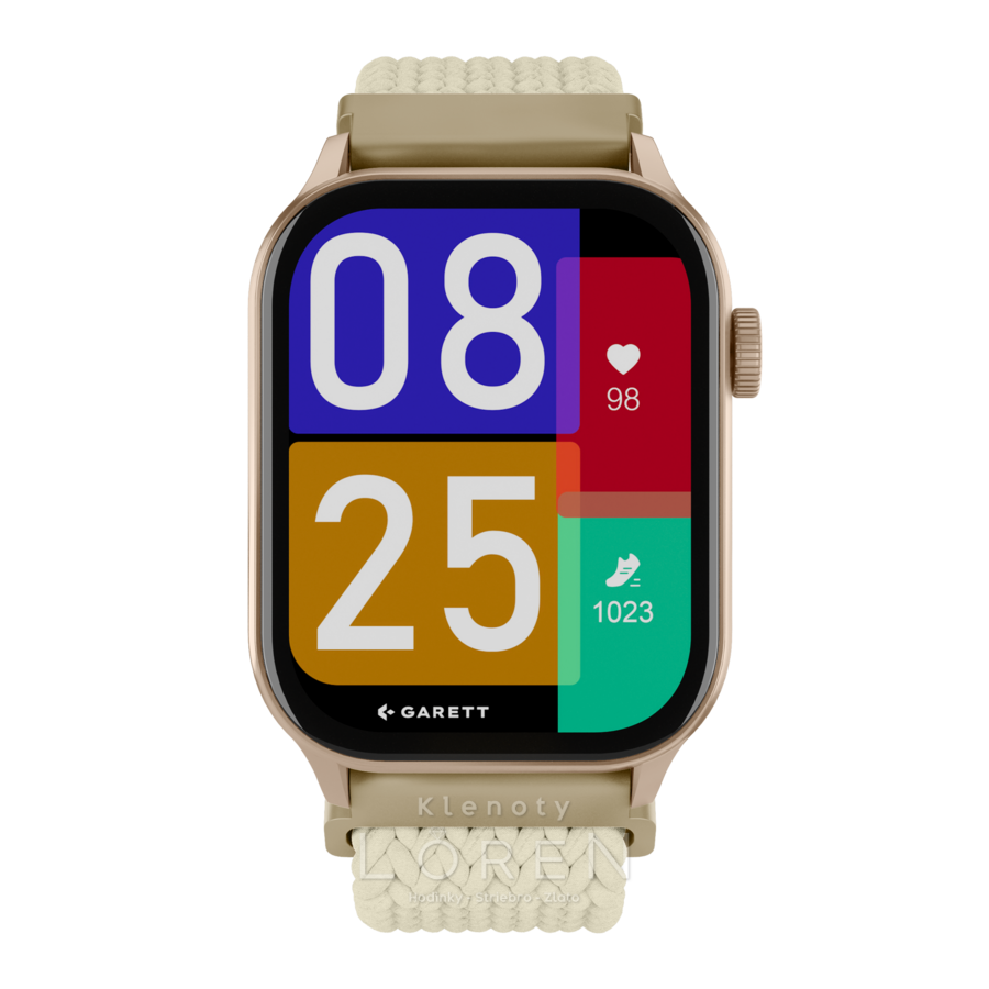 | Sada obsahuje | GARETT smartwatch, prídavný silikónový remienok, nabíjací kábel, QSG manuál |