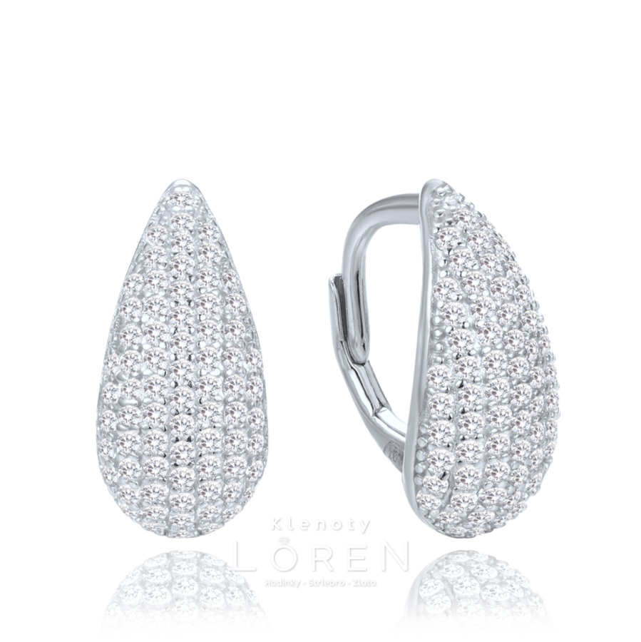 Jemné strieborné náušnice v tvare kvapky zdobené žiarivými bielymi zirkónmi.